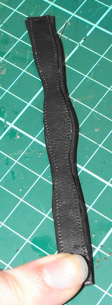 I decided to stop here since the project was obviously not able to be rescued, and didn't bother with buckles. While fiddling with the girth today I did find that by stretching the girth, the glue broke a little inside and it's not so stiff any more, but I don't think super glue is the appropriate type to use with this skiver. So either I need to look into different glues (again), or try and find a different skiver (again).